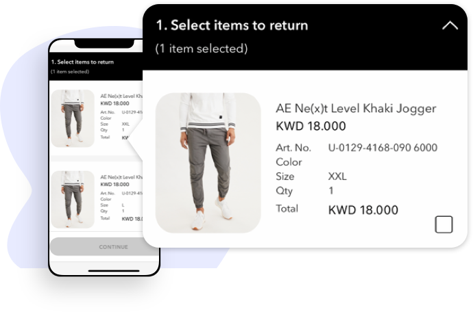 This can be done on-the-go through our website, you can select one or more items you wish to return, and they’ll be picked up and refunded.