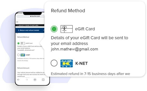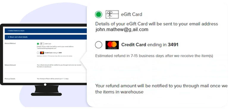 - If a customer paid for an order using the Cash on Delivery method, and has initiated an online return, the customer is allowed to select eGift card as a refund method.